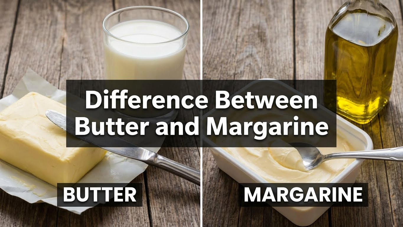 I weighed the main differences between butter and margarine: origin, fat type, and how they behave in cooking. Butter comes from cream and has more saturated fat and cholesterol. Margarine is made from vegetable oils and usually has more unsaturated fat.
