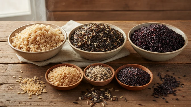 Rice types differ in fiber, vitamins, and glycemic impact. Brown, red, and black rices keep the bran and germ, so they have more fiber, magnesium, and B vitamins than white rice. I choose whole-grain rice for meals where steady energy and extra nutrients matter.